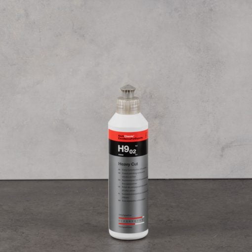 Koch-Chemie Heavy Cut H9.02 er et avansert poleringsmiddel for bruk med roterende og oscillerende poleringsmaskiner. På grunn av svært homogene slipekorn av aluminiumoksid oppnår man effektiv ripefjerning og relativt god glans slipegraden tatt i betraktning. H9.02 er laget for å brukes som grovsteg før polering med Micro Cut M3.02 eller Micro Cut & Finish P3.01.