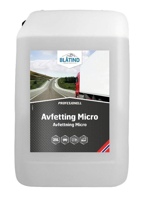 Avfetting Micro er en mikroemulsjon som inneholder en effektiv sammensetning av tensider, emulgatorer og løsemidler. Produktet fjerner effektivt både vannløselig og fettløselig smuss som støv og sand/jord, olje, fett, asfaltflekker og veisalt. Velegnet for rengjøring av bil, båt, motorsykkel, lastebil, campingvogn, campingbil, maskiner og til motorvask. Utmerket også til vask av tyngre kjøretøy. Effektiv både til karosseri og kapell.